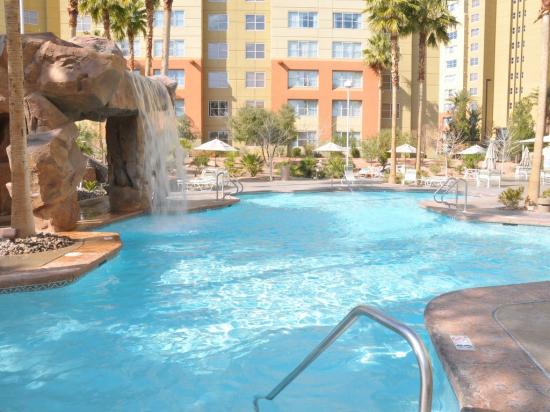 This timeshare for sale by owners offers a spacious one-bedroom unit with complete amenities such as washer and dryer machines, a fully equipped kitchen with all the usual commodities, a king-size bed in the master bedroom that contains its own relaxing Jacuzzi tub and a queen size sleeper sofa for the additional guests. Enjoy the comfort and convenience of your unit to cook your favorite dishes yourself or use the BBQ in the common picnic area that offers a magnificent view on the Las Vegas Strip with the desert landscape in the background. This residence offers a modern gym, four swimming pools, a spa with a waterfall that adds to this peaceful and relaxing setting. Nearby you will find restaurants such as the Silverado Steak House and the Vito's Garden buffet for affordable and delicious meals.