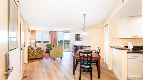 This timeshare offers 1 to 2 weeks in this prestigious residence of the Vacation Village at Bonaventure thanks to its lock-off style unit. The lock-off style unit features a shared entrance with controlled, separate access for each suite, A & B, which allows owners to share the use of their property while occupying one unit at a time and staying another week. So this 2 bedroom lock-off will allow flexible use on site or deposit one or two weeks for future exchanges worldwide within the RCI exchange network.